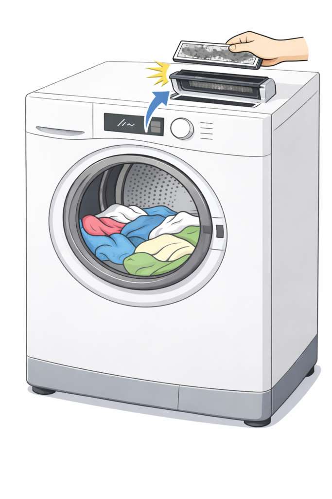 ここにホコリがたまると、乾燥が自動で終了せず、自分でボタンを押さないと止まらない状態になってしまいました。