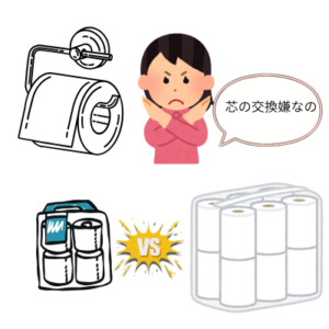 さらに、トイレットペーパーの芯の交換も、「無もなき家事」とよく言われるように、地味に面倒に感じることがあります。若い私でも、「あ〜またか…」と思うことがあるほどです。