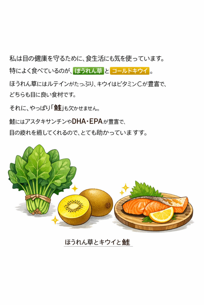 | 鮭 | アスタキサンチン、DHA | 視神経保護、抗酸化 |