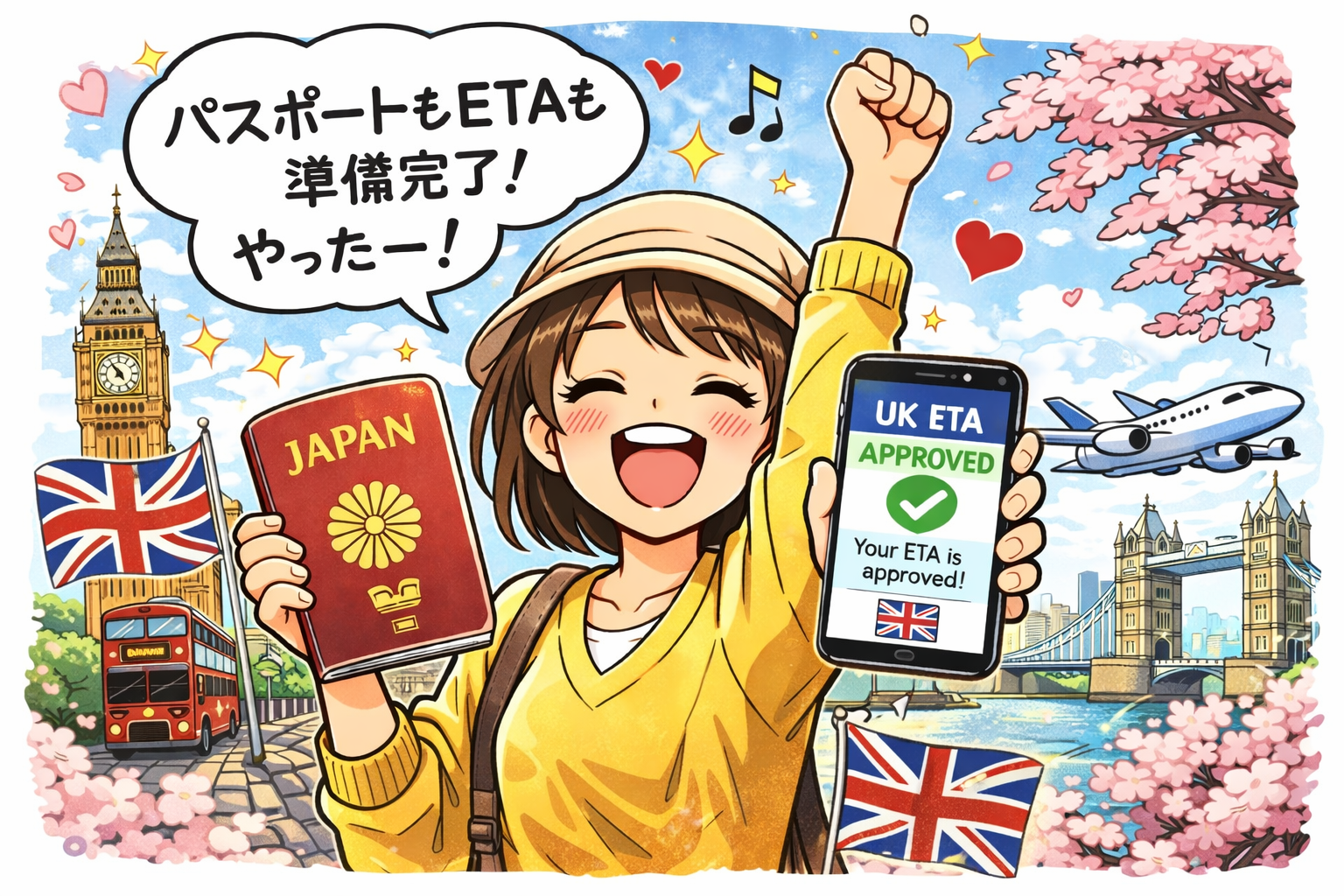 イギリス渡航には、**ETA(電子渡航認証)の取得が必要です。申請はスマートフォン専用アプリ「UK ETA」**から行います。
